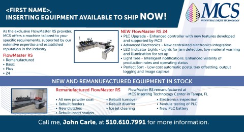 Call your MCS Sales Rep to schedule a virtual demo of our mail manufacturing solutions.